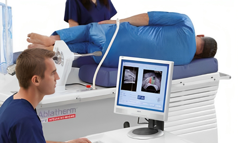 Our doctor typically commences with an initial assessment of the patient's condition and identification of the affected prostatic region necessitating intervention. Once the evaluation is complete, patients are positioned in a supine position and scanned using ultrasound imaging device. A transrectal probe is introduced into the rectum to facilitate accurate targeting and guidance throughout the intervention. The probe will emit ultrasonic energy at specific frequencies, contingent upon optimal tissue penetration and absorption characteristics. By directing several beams towards specific locations within the prostate gland, targeted heating is achieved, resulting in the destruction of cancerous tissues through coagulative necrosis. As a result of this ablation, tumors are reduced and the symptoms associated with them improve, ultimately allowing patients to regain their quality of life.
